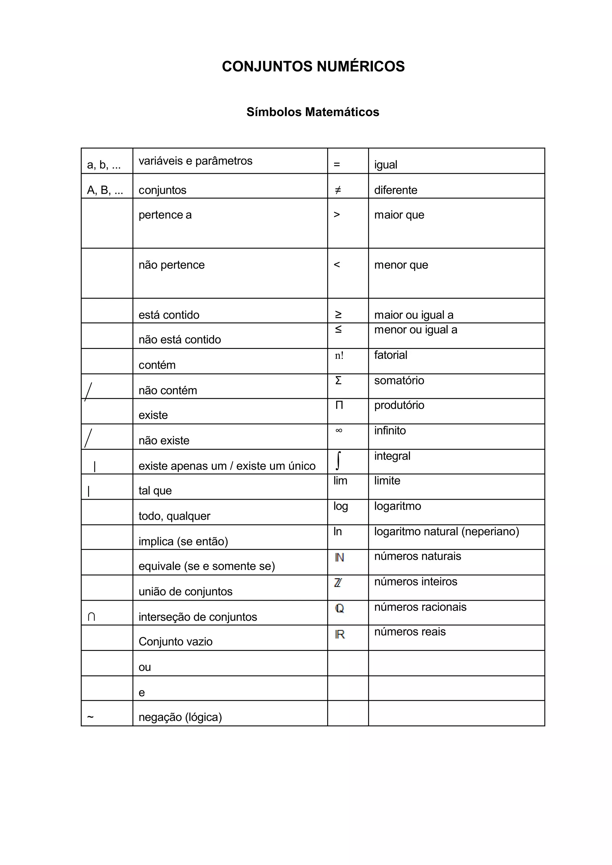 O documento apresenta conceitos básicos de conjuntos numéricos e suas operações. Define os conjuntos dos números naturais, inteiros, racionais e reais. Descreve propriedades das operações de adição, subtração e multiplicação. Fornece exemplos de exercícios sobre esses tópicos.