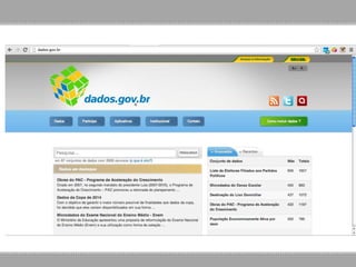 1. Os dados abertos governamentais podem trazer benefícios como transparência, controle democrático e melhoria na eficiência dos serviços públicos.
