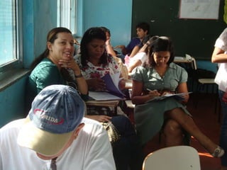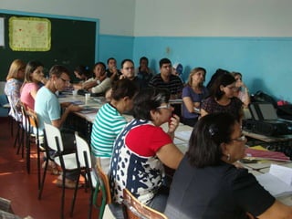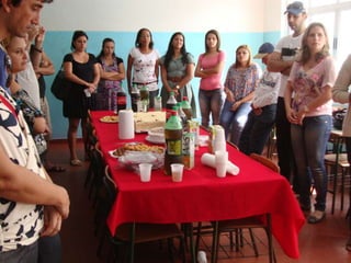 Os professores resolveram pendências com orientação da coordenadora pedagógica. A diretora geral fez prestação de contas e ouviu solicitações dos professores. Houve reflexão e oração.