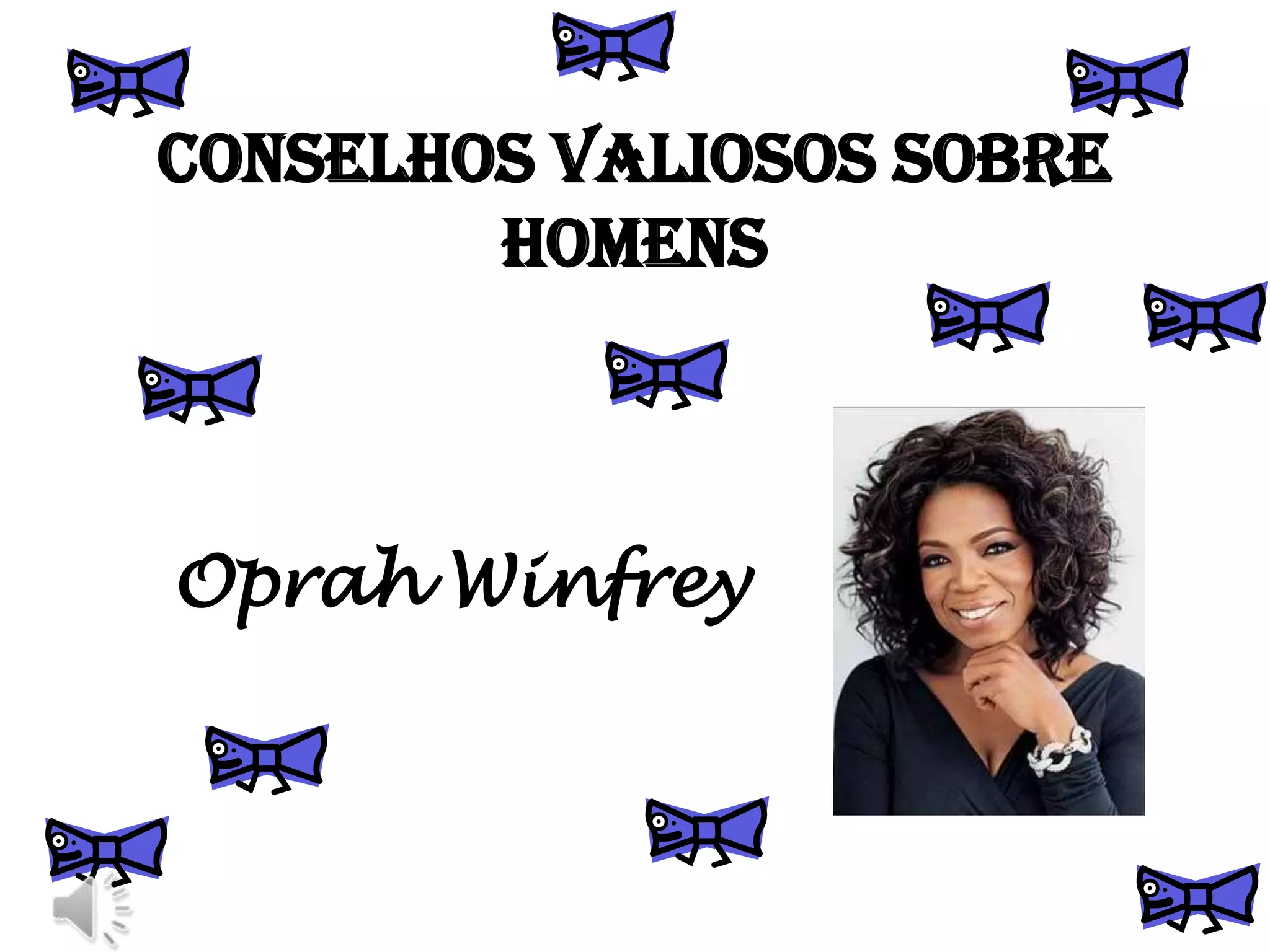 Oprah Winfrey fornece conselhos valiosos sobre relacionamentos com homens. Ela enfatiza que uma mulher não deve modificar seu comportamento ou personalidade para agradar um homem, e que ela deve colocar seus próprios limites na forma como é tratada. Oprah também aconselha as mulheres a não permanecerem em relacionamentos abusivos ou que não atendem às suas necessidades, e a não dependerem completamente de um homem.