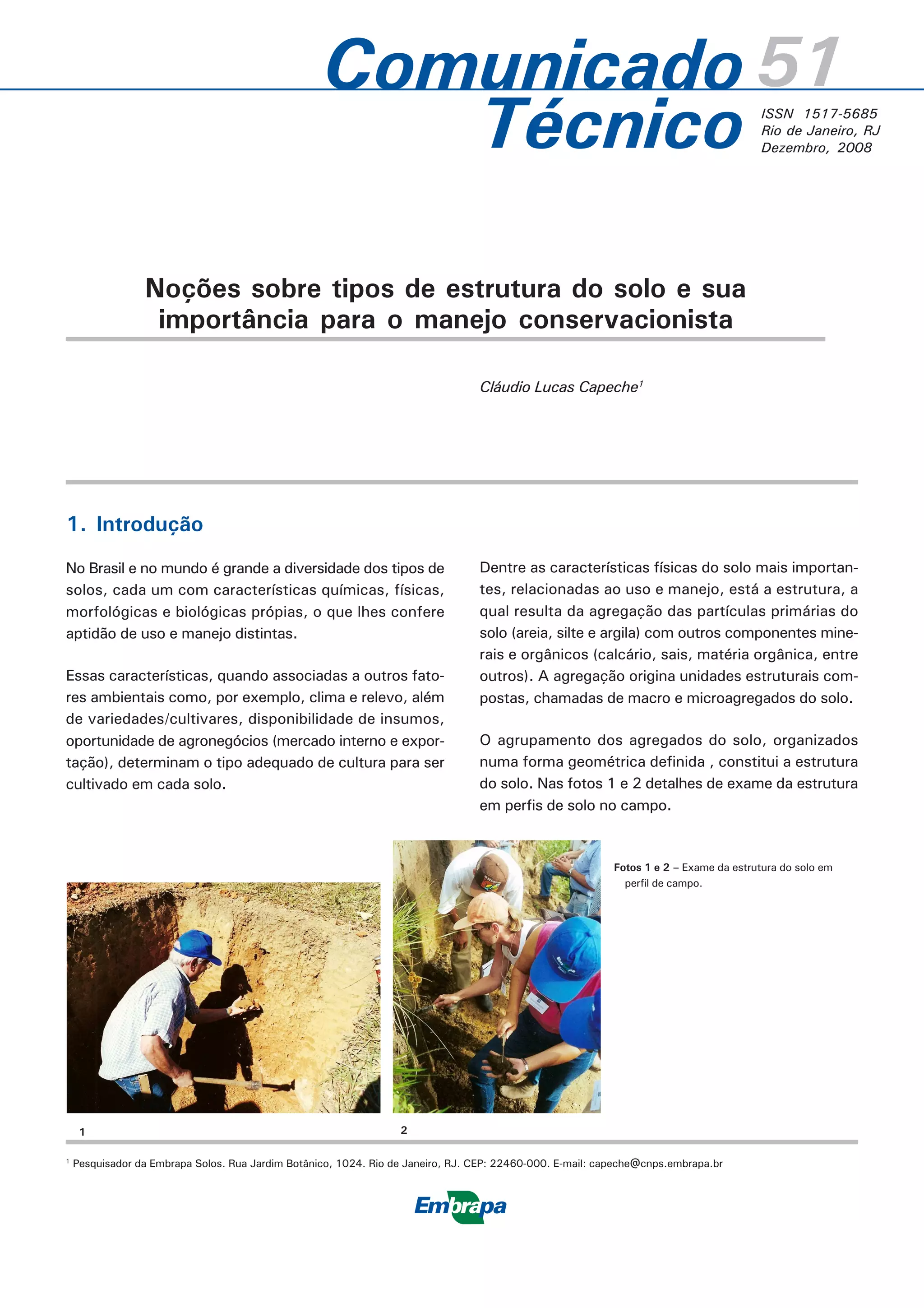 Este documento discute os tipos de estrutura do solo e sua importância para o manejo conservacionista. Existem quatro tipos principais de estrutura do solo: laminar, prismática, em blocos e granular. Uma estrutura do solo bem desenvolvida promove melhor infiltração da água, armazenamento de umidade e crescimento das plantas, além de maior resistência à erosão e compactação. A conservação do solo por meio de práticas sustentáveis é essencial para preservar sua estrutura.