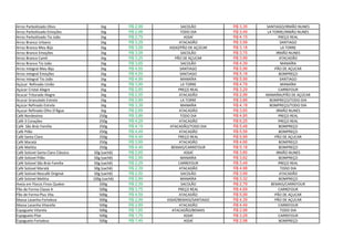 O documento lista os preços de diversos itens de alimentação em diferentes supermercados, comparando o menor e o maior preço encontrados. Os produtos com maior variação de preço entre os supermercados incluem feijão, arroz, açúcar, café e massas. Produtos como sal e temperos geralmente têm menor diferença entre os preços listados.