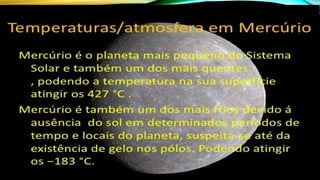 • Mercúrio possui somente 37% da gravidade da Terra não sendo o suficiente para lhe