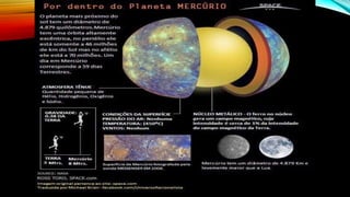 • Mercúrio tem se contraído, perdendo 7 km de elevação em algumas partes, de acordo com