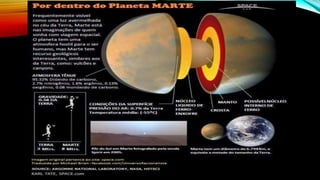 O documento descreve a constituição do sistema solar, incluindo o Sol, os três grupos de corpos celestes (planetas, planetas anões e pequenos corpos), e detalha as características dos planetas telúricos Mercúrio, Vênus, Terra e Marte.