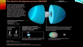 • Debaixo da atmosfera, pensa-se que Úrano possui um núcleo rochoso, envolto por um manto de gelo.