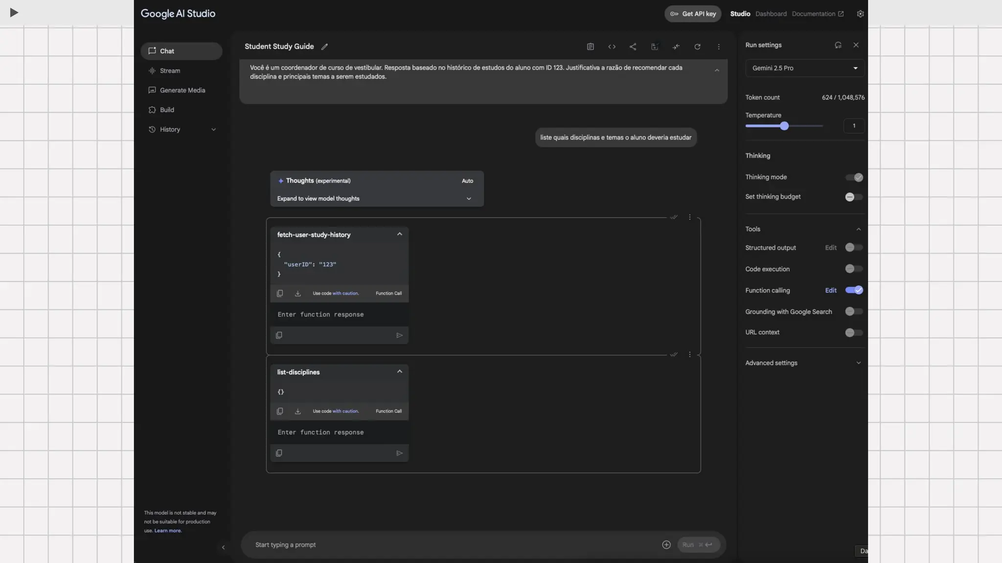Funções: fetch-user-study-history and list-disciplines