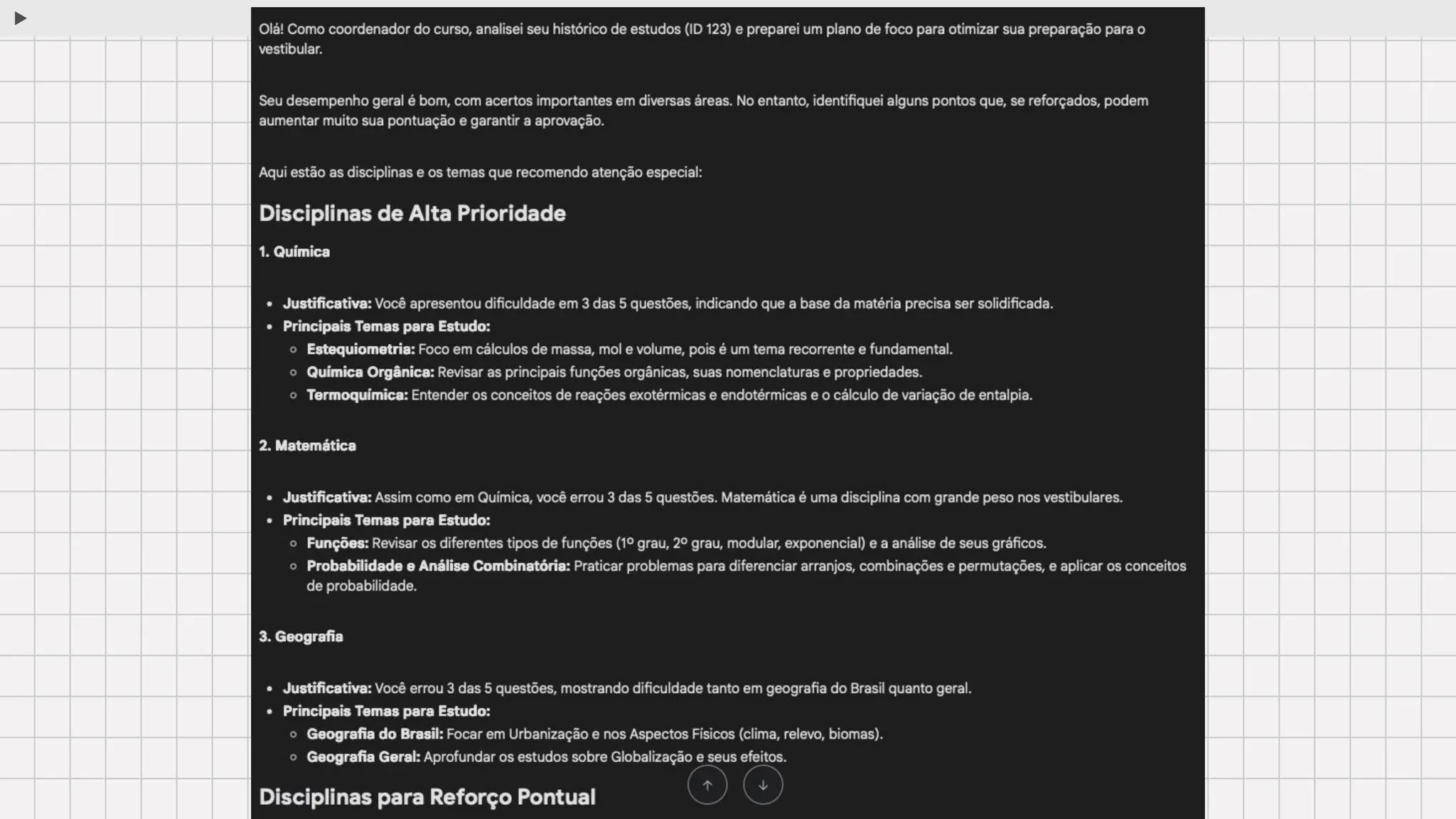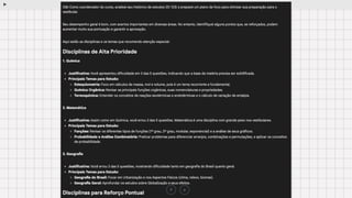 Liste quais disciplinas e temas o aluno deveria