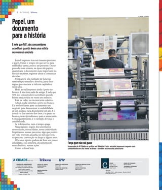 1) O documento discute a importância e credibilidade dos jornais impressos, citando uma pesquisa que mostra que 58% dos entrevistados confiam nos jornais.