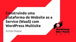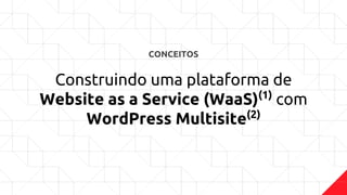 Este documento discute como construir uma plataforma de Website as a Service (WaaS) usando o WordPress Multisite. Ele explica os conceitos de WaaS e WordPress Multisite, compara os modelos "Agência" e WaaS, e fornece orientações sobre como automatizar processos e usar ferramentas como limites de espaço em disco e domínios personalizados.