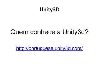 O minicurso sobre a construção de jogos com o motor Unity3D visa demonstrar suas capacidades e ensinar o uso básico da ferramenta, com foco em desenvolvimento interativo 3D para múltiplas plataformas. Os tópicos abordam desde a introdução ao Unity3D, script, e compilação, até práticas de implementação e otimização, com exemplos práticos e recursos da comunidade. O curso é destinado a qualquer pessoa interessada em criar jogos, proporcionando uma experiência lúdica e educativa.