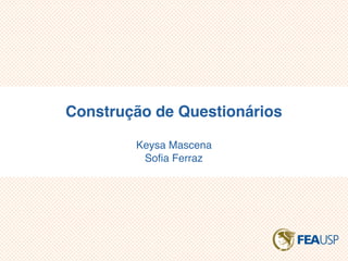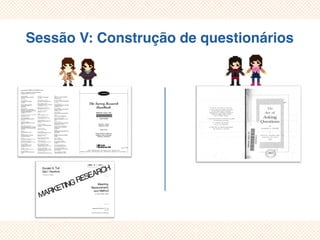 O documento discute as decisões preliminares e a composição de questões em questionários. As decisões preliminares incluem determinar a informação necessária, os respondentes e o método de comunicação. Na composição das questões, destaca-se o foco, brevidade e clareza. Também são discutidos erros como critério implícito, questões não aplicáveis e limitação por exemplos.
