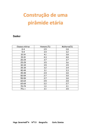A pirâmide etária apresentada mostra que a população brasileira tem mais crianças e jovens do que idosos, com maiores percentuais nas faixas entre 10-19 anos para homens e 10-14 anos para mulheres.