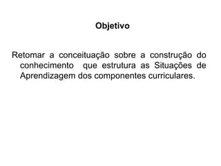 Este documento descreve uma oficina sobre a construção do conhecimento nos cadernos do currículo. A oficina inclui uma discussão sobre ensino e aprendizagem, a elaboração de situações de aprendizagem por área do conhecimento, e o compartilhamento dessas situações.
