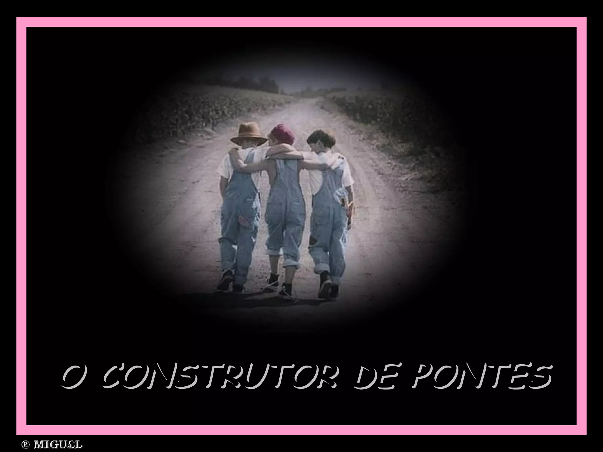 Dois irmãos brigaram e pararam de se falar. Um carpinteiro construiu uma ponte ao invés de uma cerca para separá-los, reunindo os irmãos que se reconciliaram. O texto defende que devemos construir pontes ao invés de cercas para nos aproximar de pessoas importantes em nossa vida.