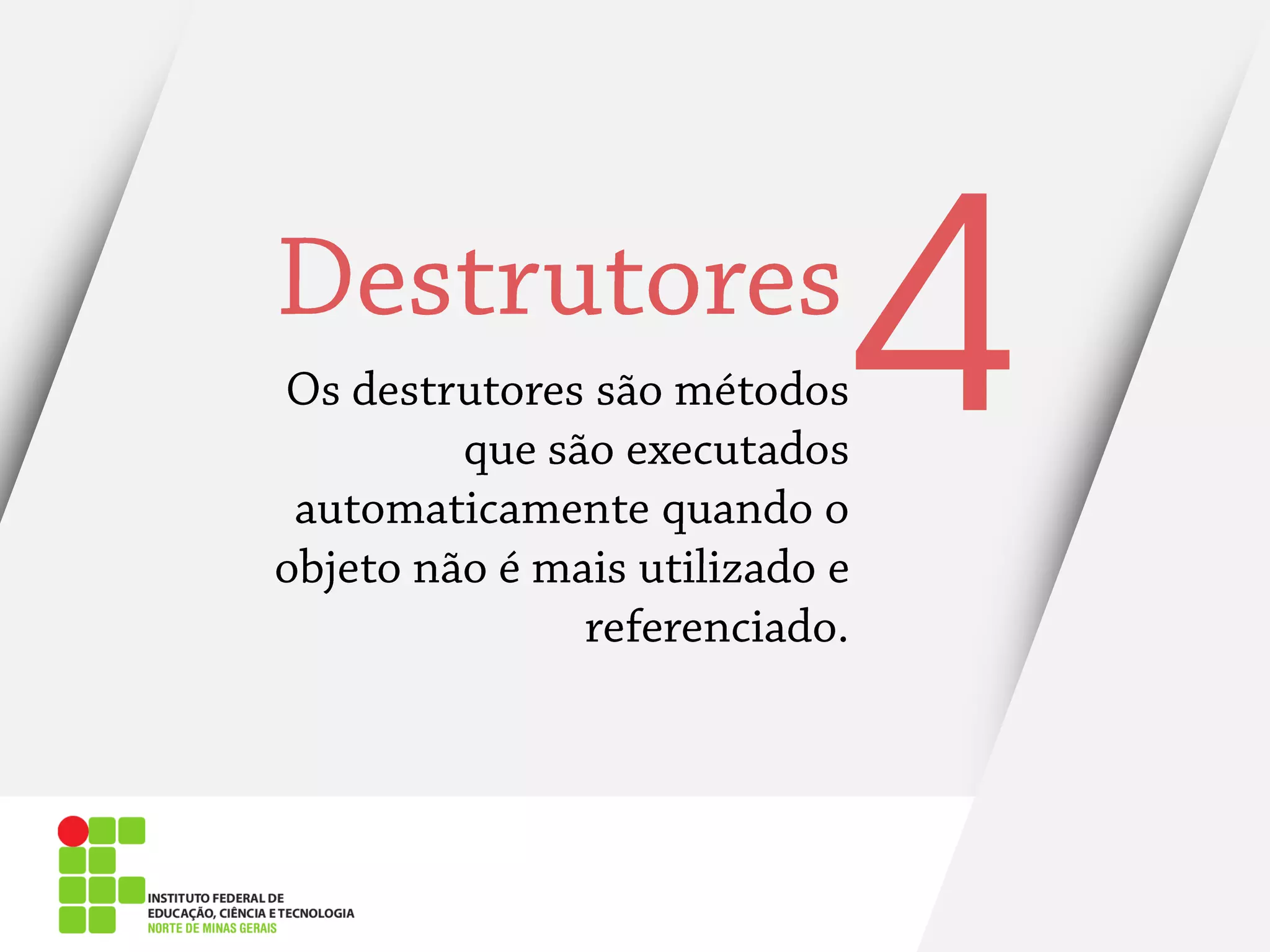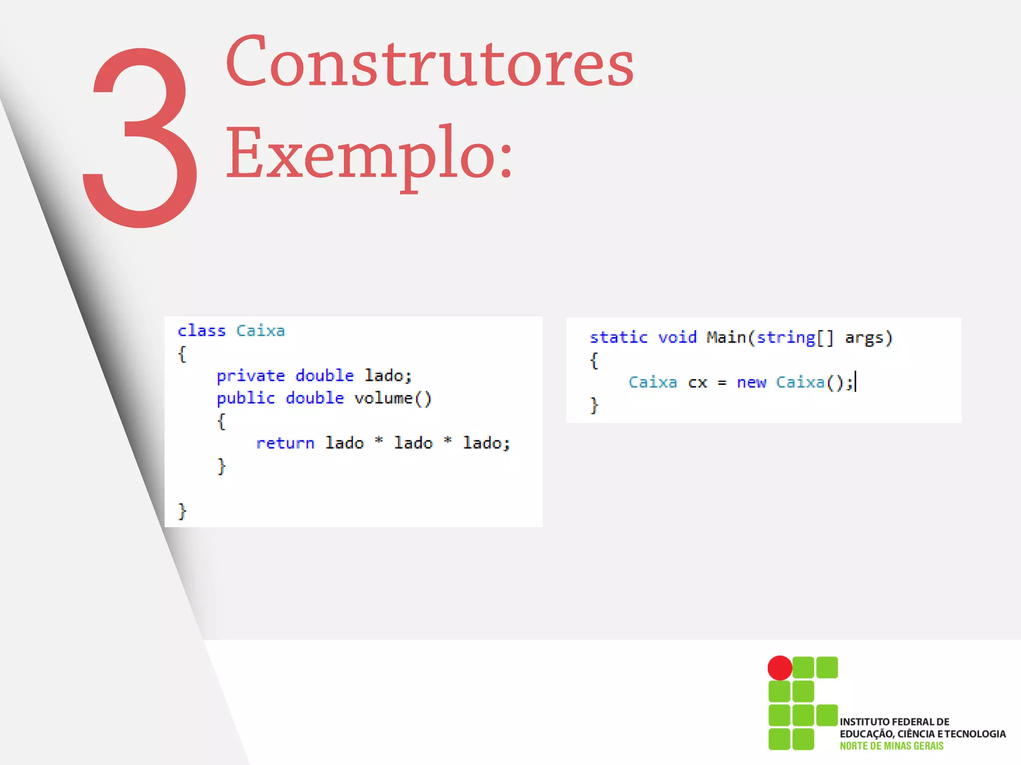 O documento apresenta uma classe Caixa em C# com dois construtores e um destrutor. A classe possui um atributo privado lado do tipo double e métodos para calcular o volume e exibir mensagens no destrutor. O programa cria um objeto Caixa passando um valor para o construtor e exibe o volume calculado.
