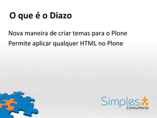 O documento descreve como criar temas para o Plone usando Diazo, uma nova maneira de aplicar HTML ao Plone através de um arquivo XML de regras. Ele explica a estrutura básica de um tema Diazo, como substituir elementos do conteúdo do Plone com o tema e a ordem de execução das regras Diazo.
