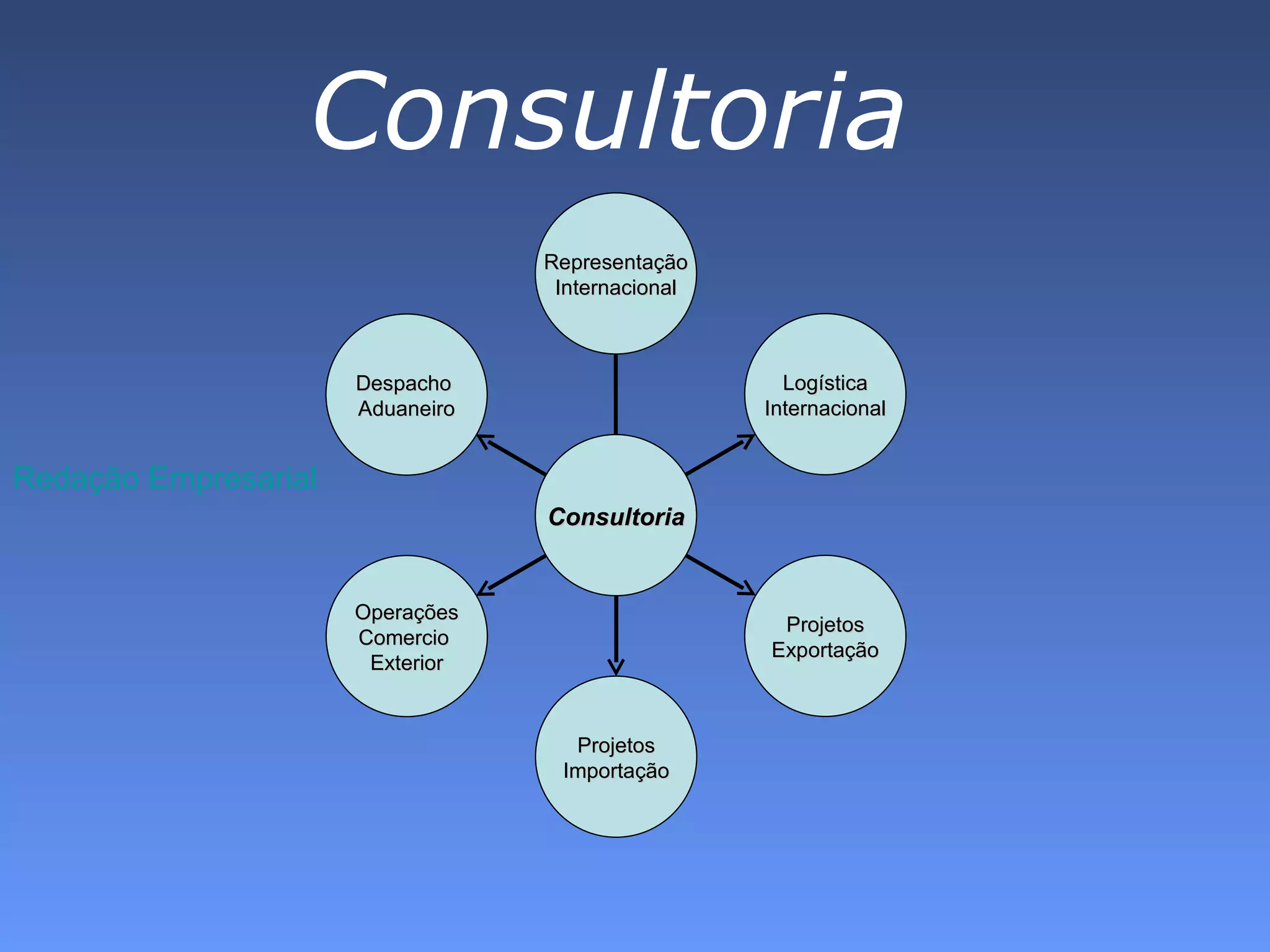 A empresa oferece diversos serviços relacionados à logística e comércio exterior, como projetos de exportação e importação, operações de comércio exterior, despacho aduaneiro e consultoria. Ela busca desenvolver soluções personalizadas para gerar o melhor custo-benefício possível para os clientes.