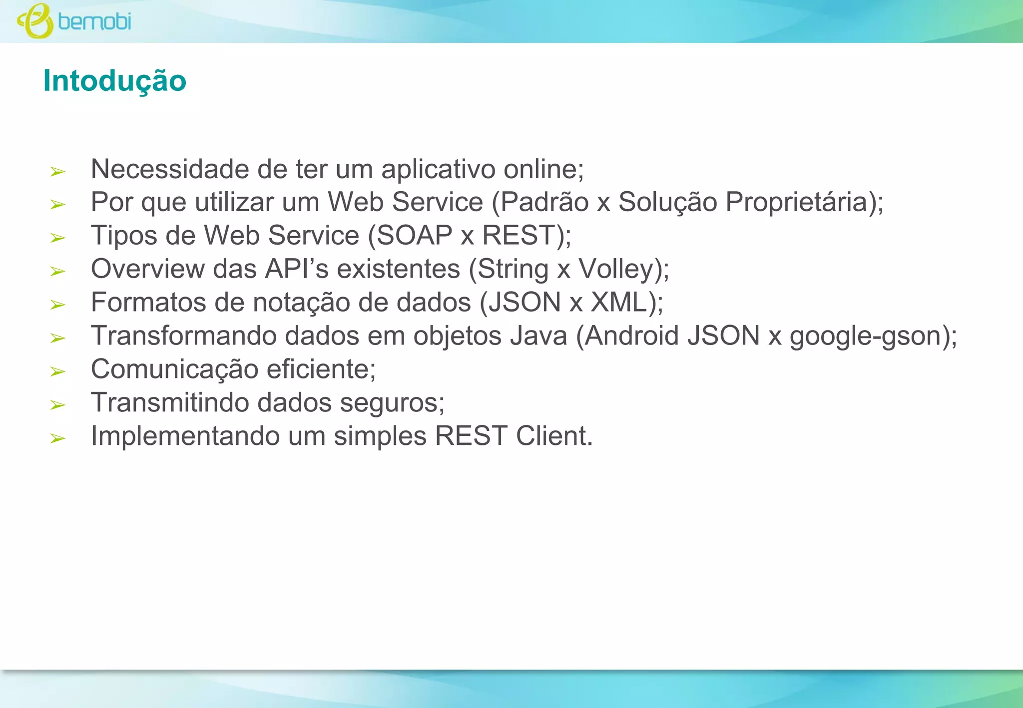 2) Transforming data received from web services into Java objects using libraries like Spring, Volley, and Google Gson.