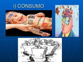 O documento discute os conceitos de sociedade de consumo, estilos de vida e consumo sustentável. A sociedade de consumo é caracterizada pela abundância de bens e estímulo ao consumo através da publicidade. Os estilos de vida refletem valores e comportamentos que constroem identidades através das escolhas de consumo. O consumo sustentável defende o uso responsável dos recursos sem comprometer as gerações futuras.