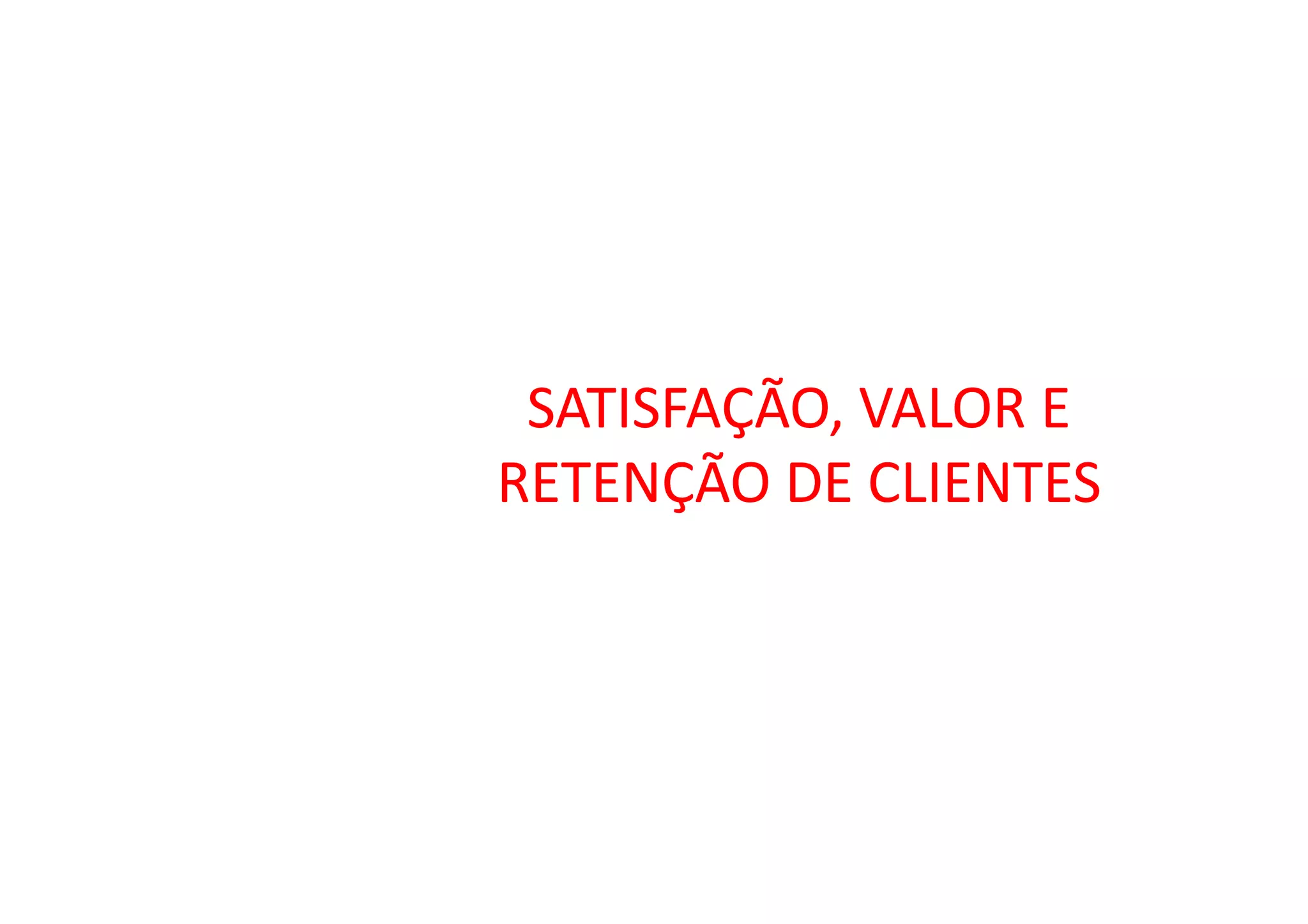 O documento discute os conceitos de satisfação do cliente, valor percebido e retenção de clientes. Em particular, destaca que a satisfação leva à fidelidade dos clientes, e que os consumidores escolhem as ofertas que fornecem o maior valor considerando custo e benefícios. Também discute como entender o comportamento do consumidor é importante para o planejamento de marketing.