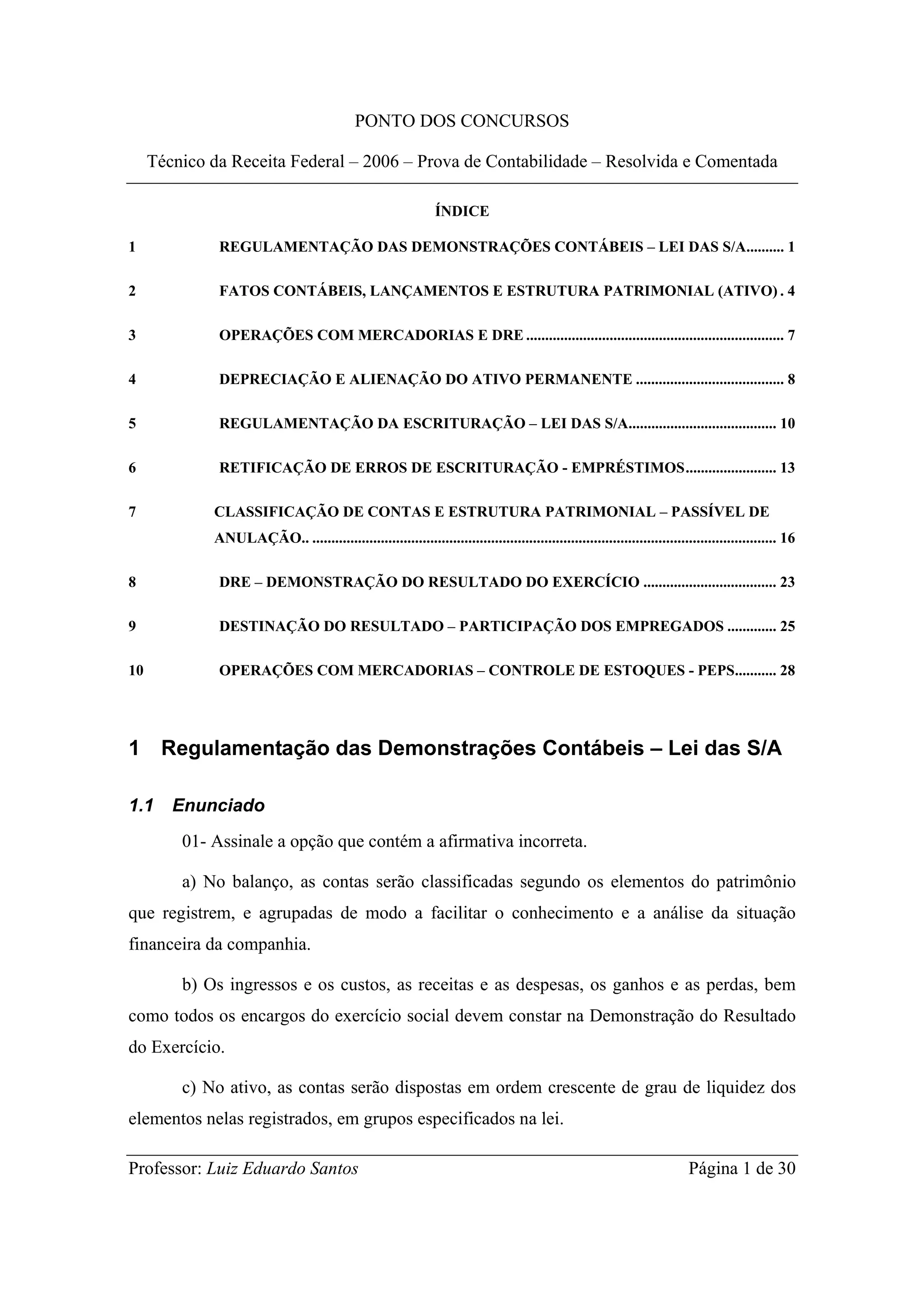 Este documento fornece uma resolução comentada de uma prova de contabilidade para o cargo de Técnico da Receita Federal. O texto resume 3 questões da prova, abordando regulamentação contábil, lançamentos de fatos contábeis e cálculos para manter margem de lucro.