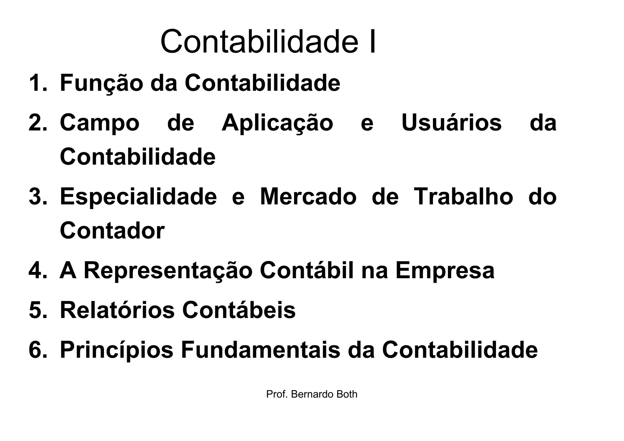 1) O documento discute os principais conceitos e elementos da contabilidade, incluindo suas funções, usuários, princípios, componentes patrimoniais, contas, plano de contas e balanços.