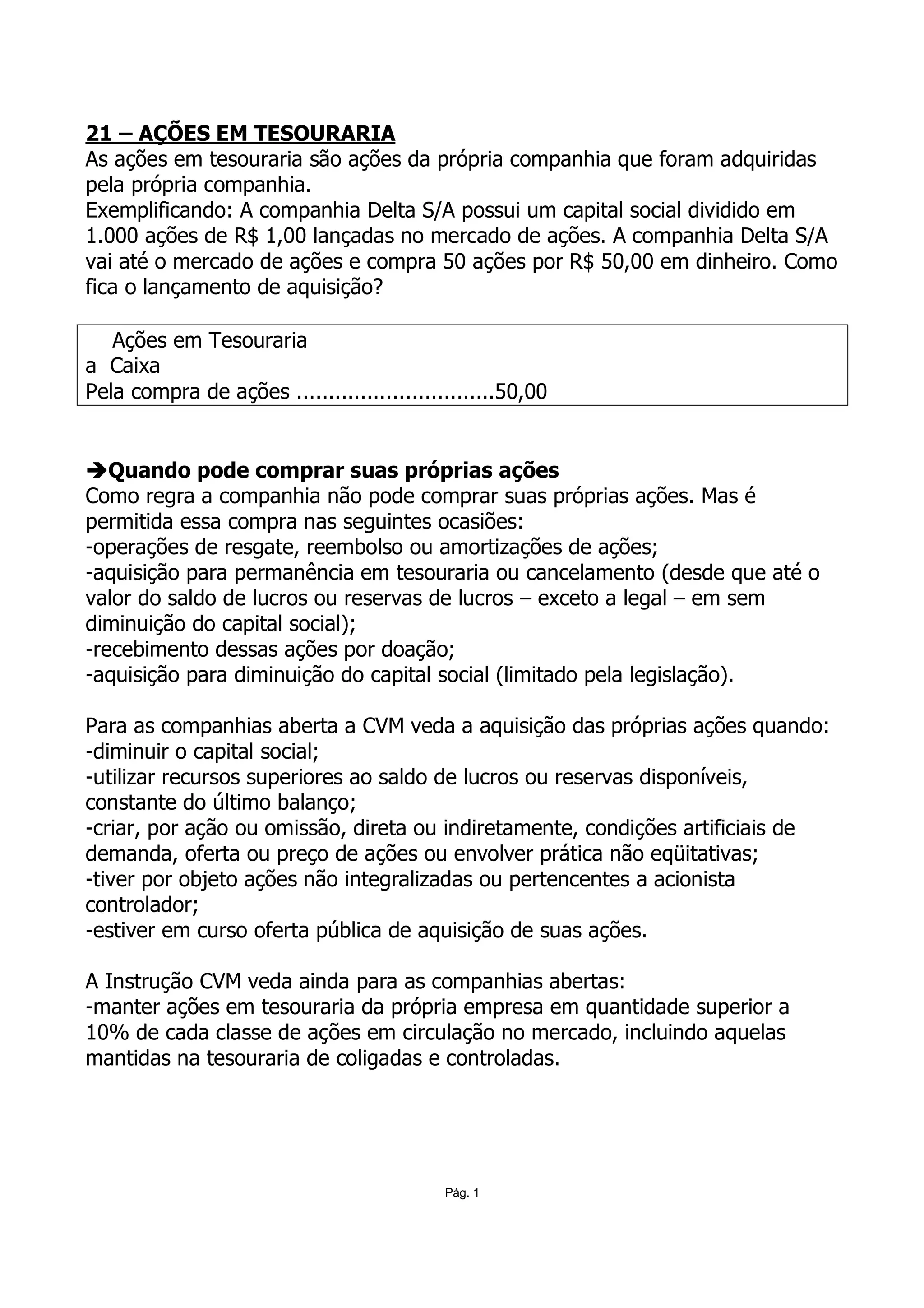 As ações em tesouraria são ações da própria companhia que foram adquiridas pela própria companhia. A companhia registra a aquisição dessas ações deduzindo do patrimônio líquido. O lucro ou prejuízo com a venda futura dessas ações não afeta o resultado, mas é registrado em reserva de capital.