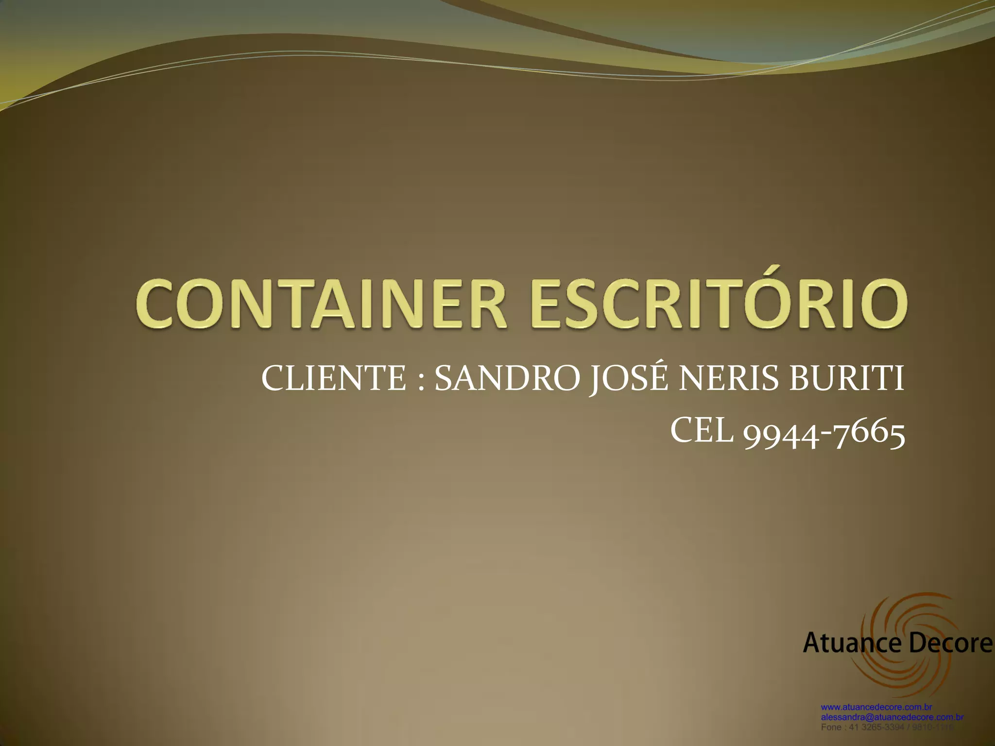 Plano de projeto arquitetônico para uma casa com planta baixa, cozinha, lavabo, escritório e arquivo. O cliente é Sandro José Neris Buriti, com número de celular 9944-7665.