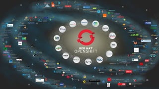 O documento discute como a plataforma Red Hat OpenShift permite a adoção de DevOps através do uso de containers. Ele descreve como OpenShift fornece uma solução completa para construir, implantar e operar aplicações usando containers, incluindo recursos como orquestração, automação do ciclo de vida e serviços. OpenShift é construído sobre Docker e Kubernetes e oferece uma experiência de desenvolvedor aprimorada para implantação ágil de aplicações.