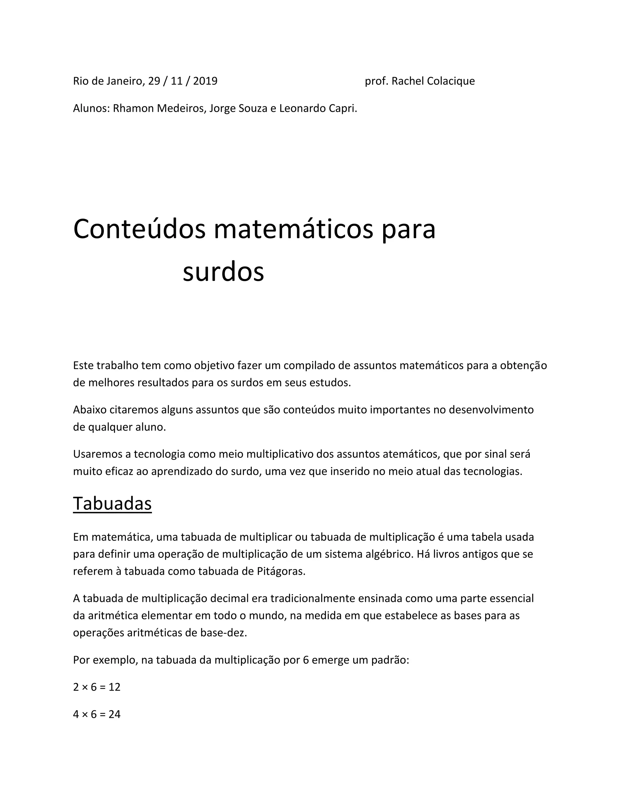 O documento fornece links de vídeos no YouTube sobre diversos tópicos matemáticos como tabuadas, geometria plana, potenciação, frações, porcentagem e probabilidade. Os vídeos são em Língua Brasileira de Sinais para auxiliar alunos surdos no aprendizado desses conteúdos.