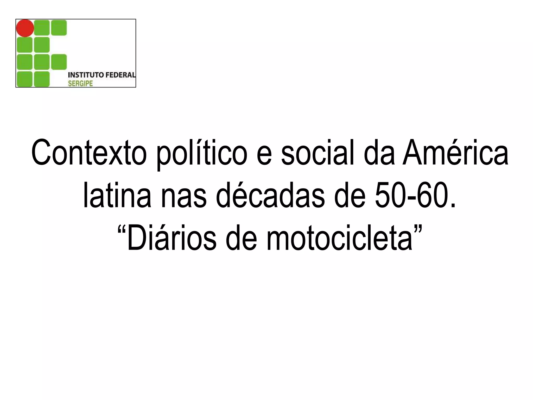 O documento analisa o contexto político e social da América Latina nas décadas de 50 e 60, com foco na viagem de Ernesto Guevara e Alberto Granado, descrita no filme 'Diários de Motocicleta'. Os textos discutem as péssimas condições econômicas, corrupção, expansão do socialismo e as ditaduras militares na região. Também apresenta informações geográficas e demográficas sobre Argentina, Chile, Peru, Colômbia e Venezuela.