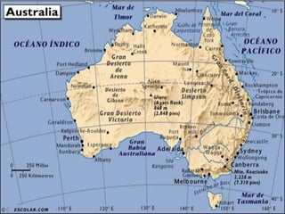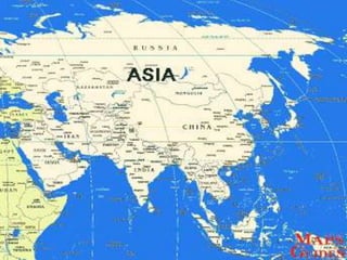 O documento descreve os seis principais continentes: África, América, Antártica, Ásia, Europa e Oceânia. Fornece detalhes sobre a localização, tamanho e população de cada um. Ásia é o maior continente em área e população, enquanto a Oceânia é o menor.