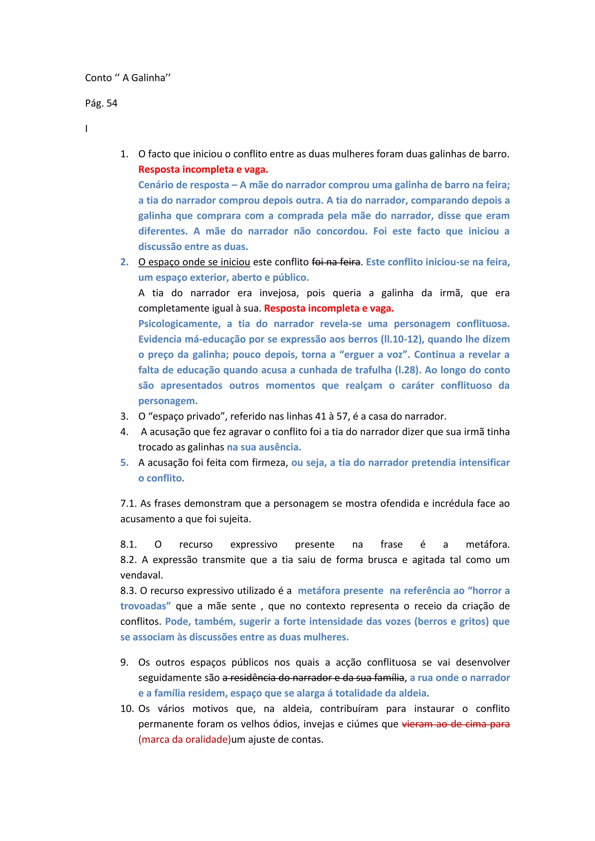 O conto descreve um conflito entre duas mulheres, a mãe do narrador e sua tia, que começou quando compraram galinhas de barro idênticas na feira. A tia acusou a cunhada de trocar as galinhas para ficar com a dela, intensificando o conflito. O desentendimento se espalhou pela aldeia, dividindo os moradores em grupos a favor de cada mulher.