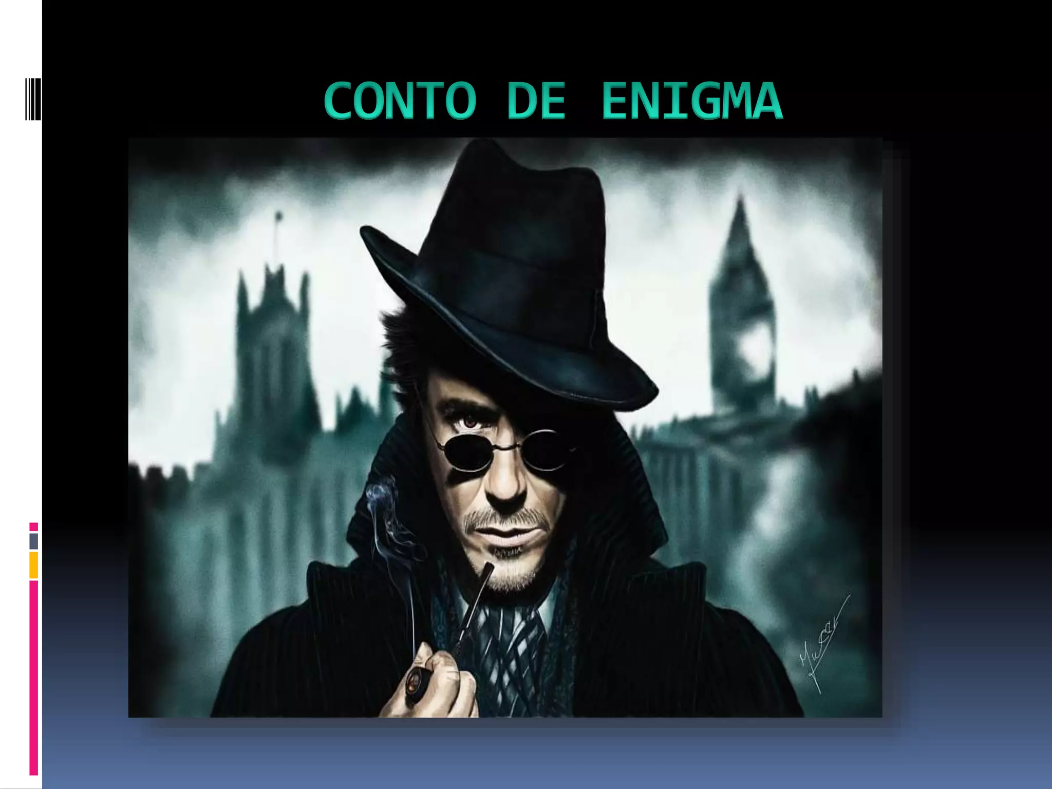 Um conto de enigma é caracterizado por ter um enredo lógico com um motivo, meio e pistas para o crime, apresentar evidências para solução do mistério e pistas falsas para enganar personagens, mas não o detetive.