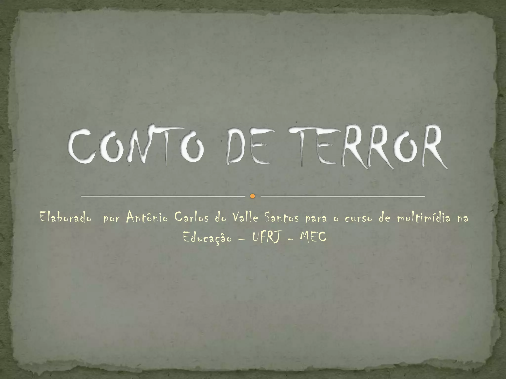 O documento fornece instruções para a criação de um conto de terror, listando os elementos essenciais de uma narrativa (personagens, ambiente, tempo, narrador, enredo). Também fornece links para inspiração e sites sobre contos de terror, e critérios para avaliação da história criada.