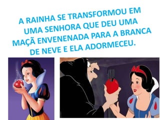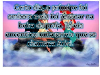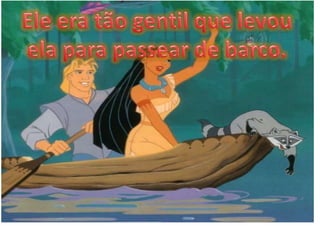 O documento contém vários trechos de histórias infantis como Branca de Neve, A Bela Adormecida e Pocahontas. As histórias falam sobre princesas que enfrentam desafios como feitiços, rainhas invejosas e monstros, mas acabam encontrando o amor verdadeiro de um príncipe e vivem felizes para sempre.