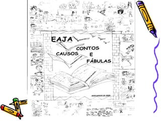 O documento contém uma coletânea de contos, causos e fábulas escritos por estudantes de uma escola municipal, com mensagens encorajando a leitura, o compartilhamento de histórias e desejando boas festas aos leitores.