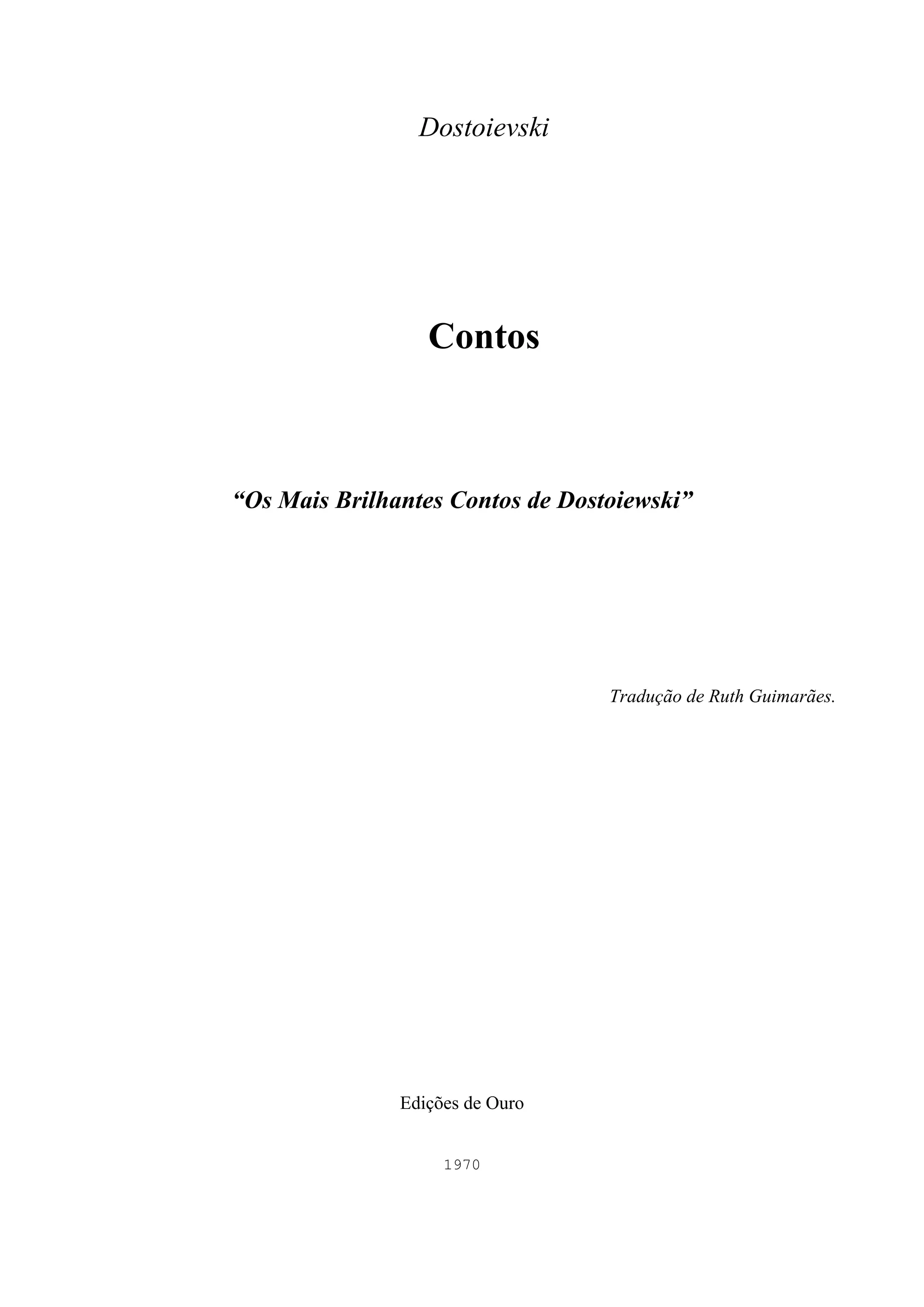 Este documento apresenta um resumo de três contos de Dostoievski traduzidos para o português por Ruth Guimarães e publicados pela editora Edições de Ouro em 1970. O primeiro conto resumido é "O Subsolo", que descreve as reflexões de um homem insatisfeito consigo mesmo sobre sua vida e consciência.