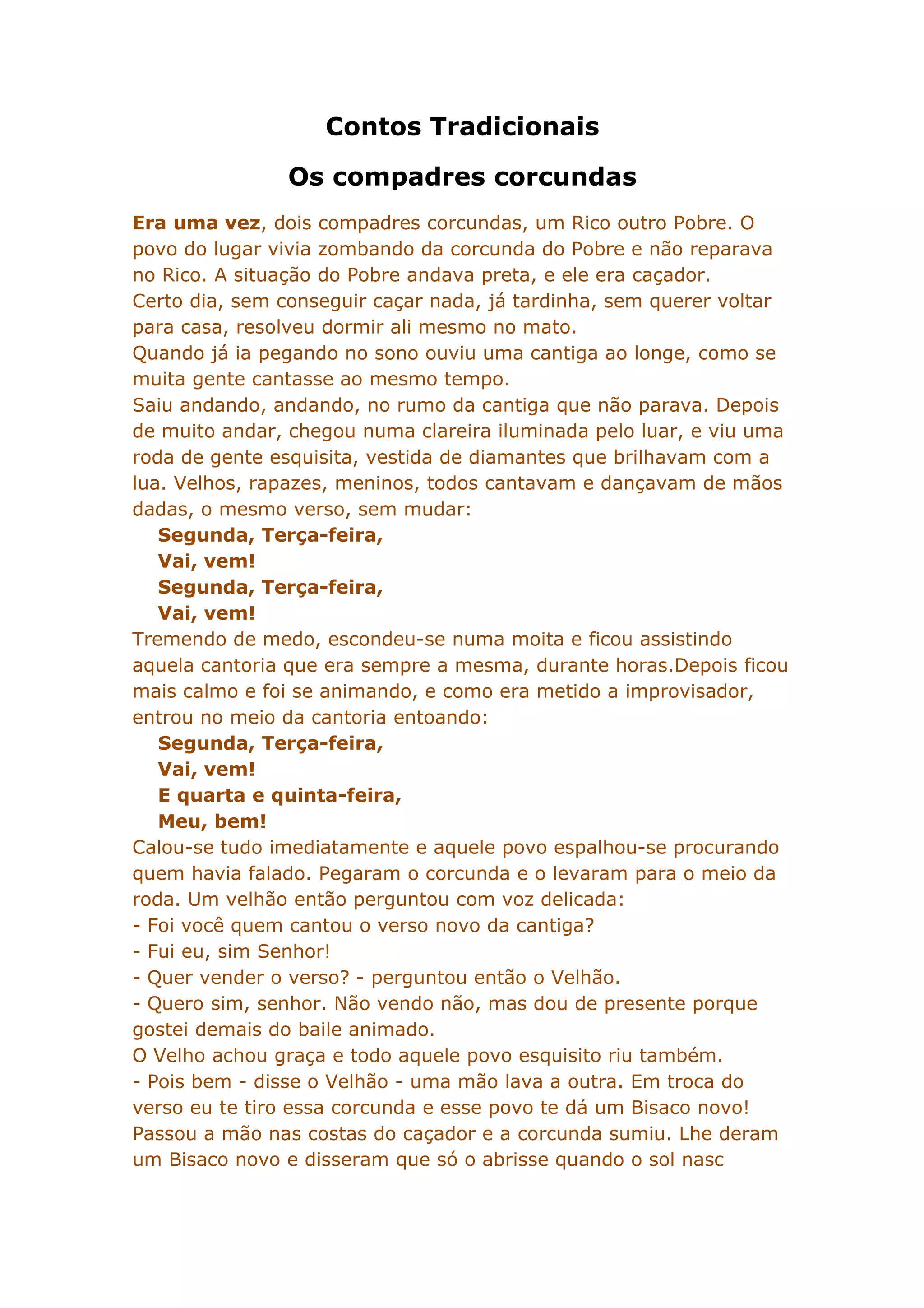 O conto descreve a história de um sapateiro pobre que vivia feliz com sua família apesar da pobreza. Um vizinho rico deu dinheiro ao sapateiro para ajudá-lo, porém o dinheiro trouxe discórdia à família. No final, o sapateiro devolve o dinheiro ao vizinho para recuperar a alegria e união familiar que tinha antes.