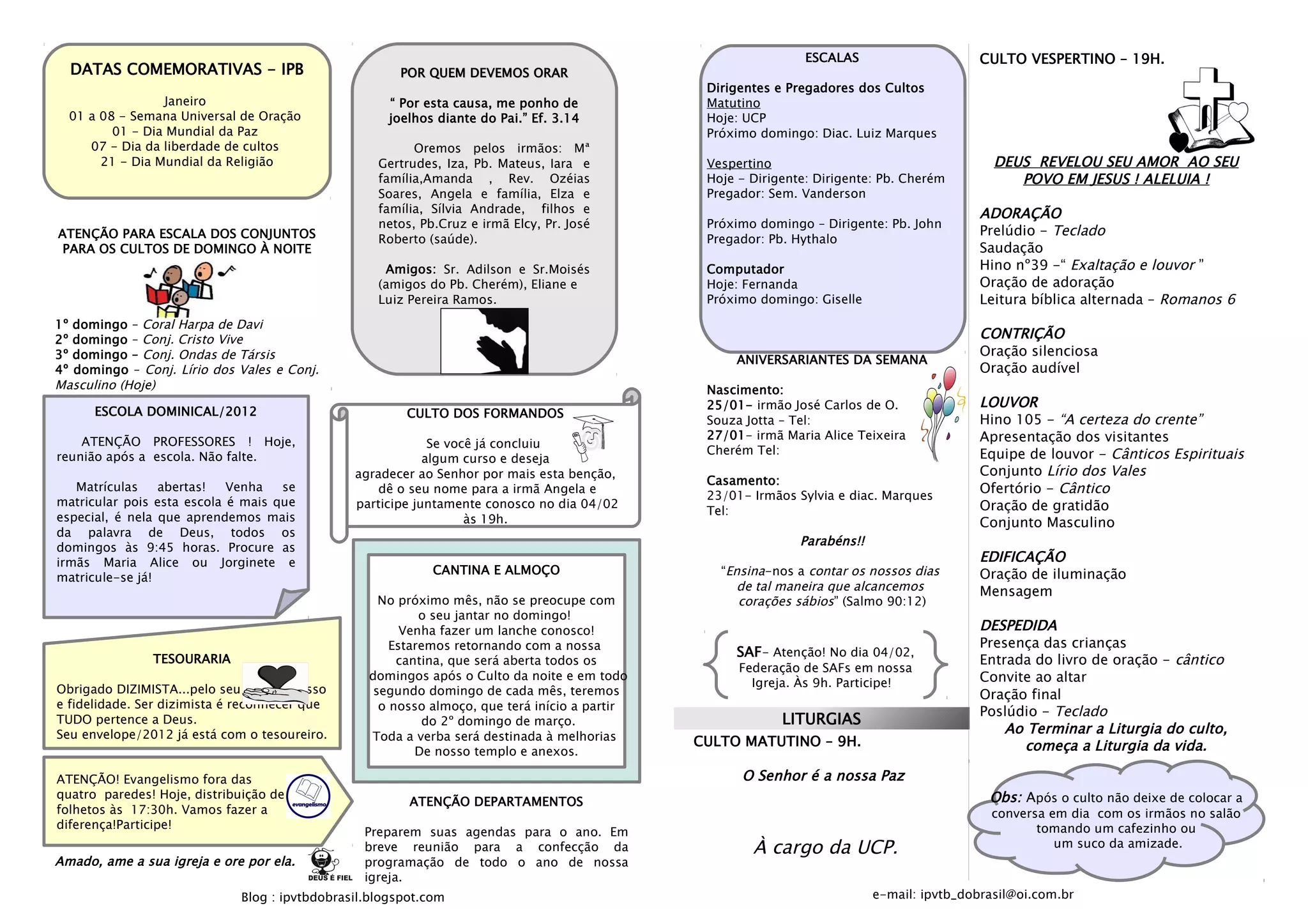 Blog : ipvtbdobrasil.blogspot.com e-mail: ipvtb_dobrasil@oi.com.br