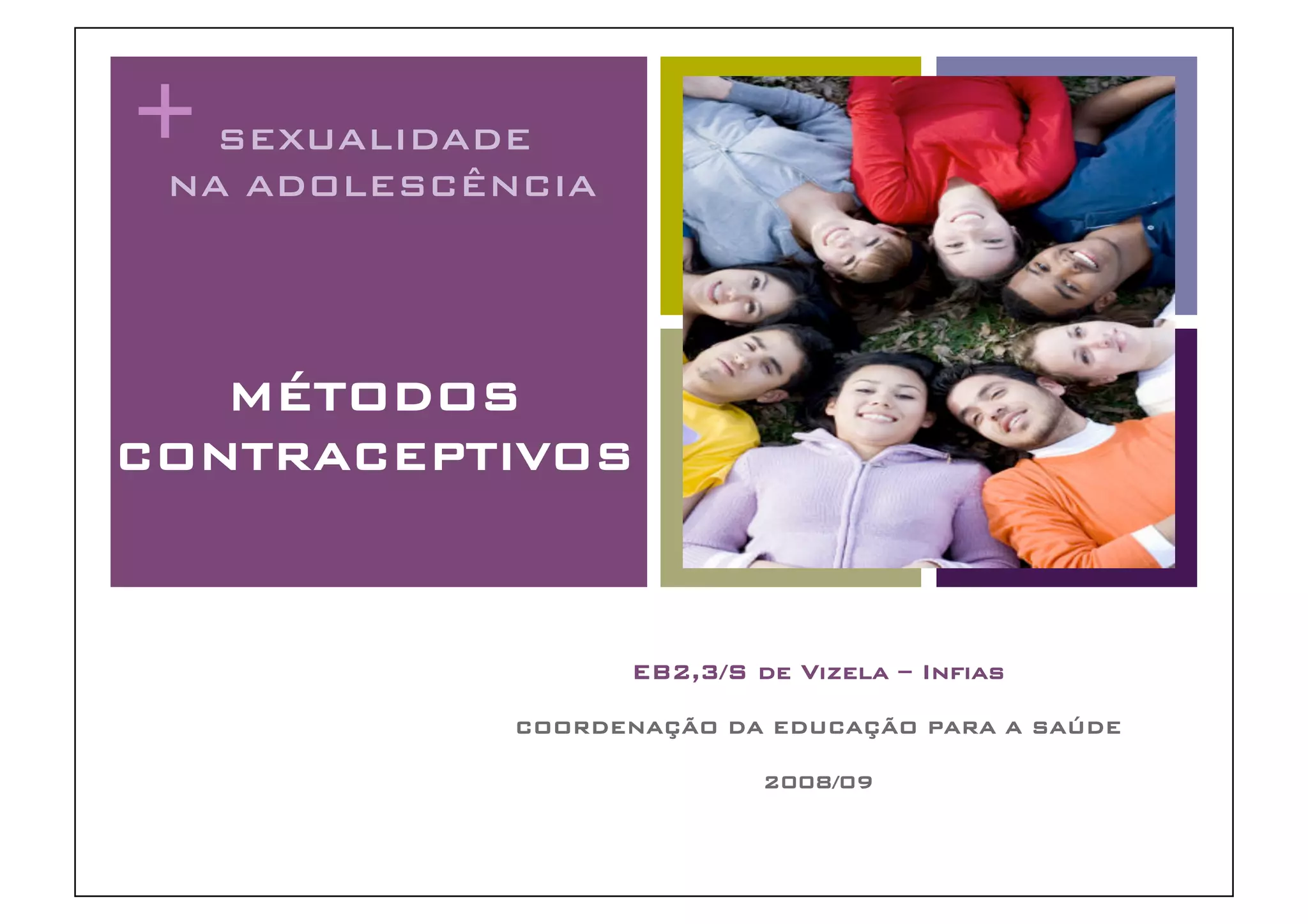 Este documento fornece informações sobre métodos contraceptivos para adolescentes, descrevendo vários métodos naturais, mecânicos, químicos e cirúrgicos, assim como suas vantagens e desvantagens. Enfatiza a importância de consultar um médico para escolher o método mais adequado e seguro individualmente.