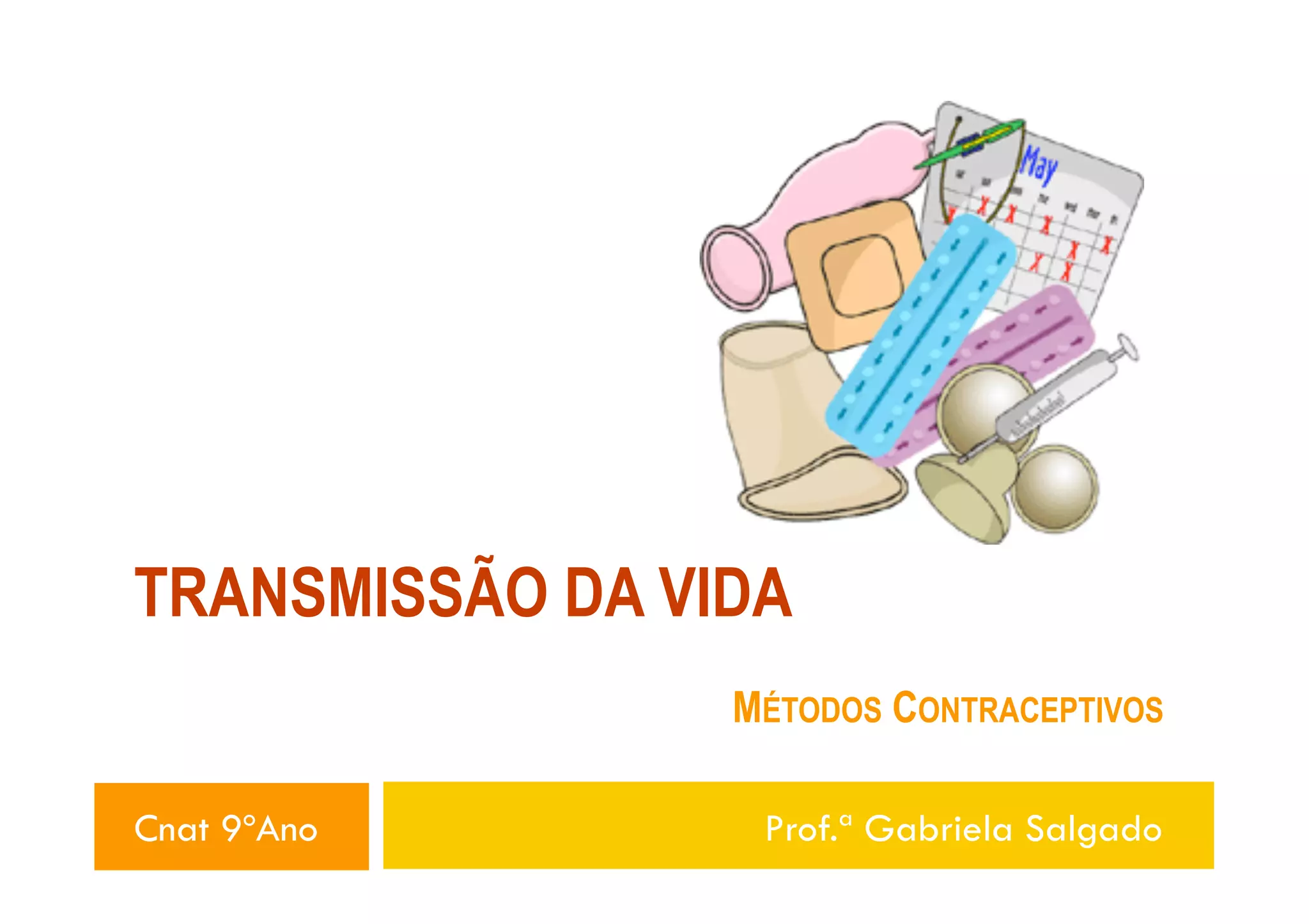 O documento resume os principais métodos contraceptivos, divididos em naturais (calendário, temperatura basal, muco cervical), tecnológicos (barreiras, hormonais, cirúrgicos) e descreve suas vantagens e desvantagens. Os métodos naturais evitam a fecundação através da abstinência durante o período fértil enquanto os tecnológicos impedem a fecundação, ovulação ou nidação. Dentro dos tecnológicos, os hormonais têm alta eficá