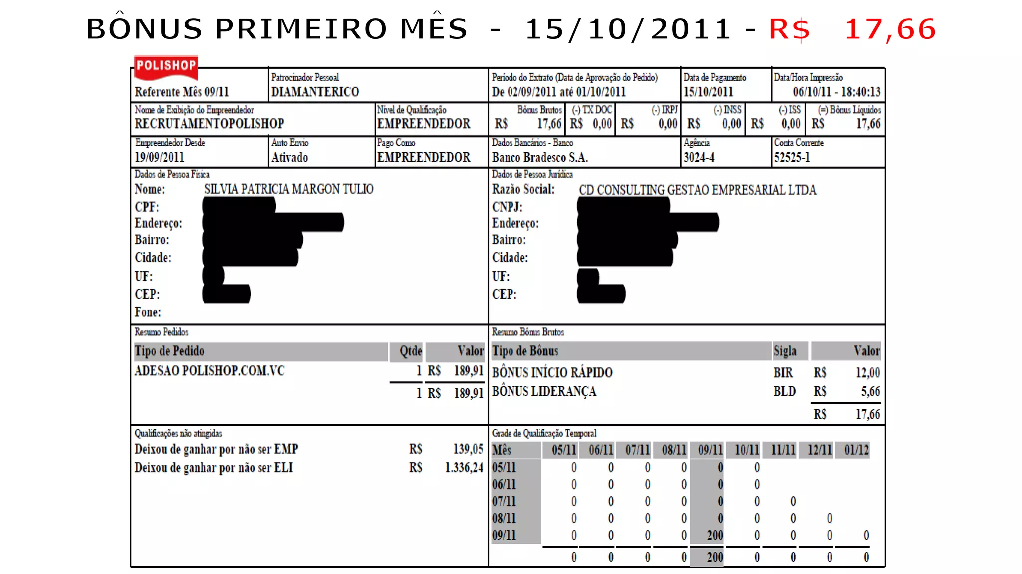 Este documento lista os ganhos de investimentos em diferentes pedras preciosas em diferentes períodos de tempo, totalizando R$57.920,51 em janeiro de 2016. O autor afirma ter feito o necessário para atingir esses resultados, ouvindo conselhos, confiando no processo e colocando em prática.