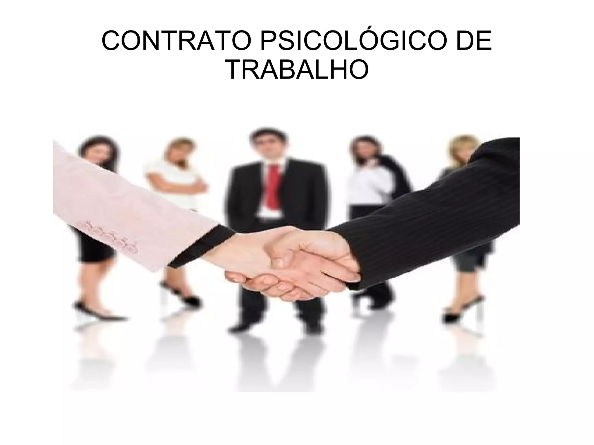 O documento discute o conceito de contrato psicológico de trabalho, que são as expectativas mútuas entre empregados e empregadores. Espera-se bem-estar, crescimento e benefícios por parte dos empregados, e lucratividade e cumprimento de metas por parte das empresas. Quando essas expectativas não são atendidas, surgem frustração e estresse. Ajustar as expectativas e melhorar a comunicação entre as partes pode ajudar a evitar esses problemas.