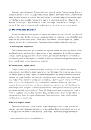 Este documento descreve as principais ideias de Descartes que contribuíram para a filosofia moderna, incluindo: (1) Descartes questionou os conhecimentos filosóficos existentes e buscou estabelecer uma filosofia certa e duradoura; (2) Ele duvidou de tudo, incluindo os sentidos e a razão, para encontrar uma certeza indubitável, chegando à conclusão "penso, logo existo". (3) Descartes fundou a epistemologia como tema central da filosofia moderna, buscando estabelecer