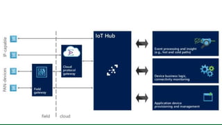 Este documento discute o uso de chatbots inteligentes para controlar dispositivos da Internet das Coisas. Ele explica como os chatbots podem se comunicar com dispositivos IoT usando serviços como IoT Hub e processar dados usando Cognitive Services da Microsoft. A demonstração mostra um chatbot chamado Isac que pode controlar dispositivos, reconhecer fala e entender linguagem natural.