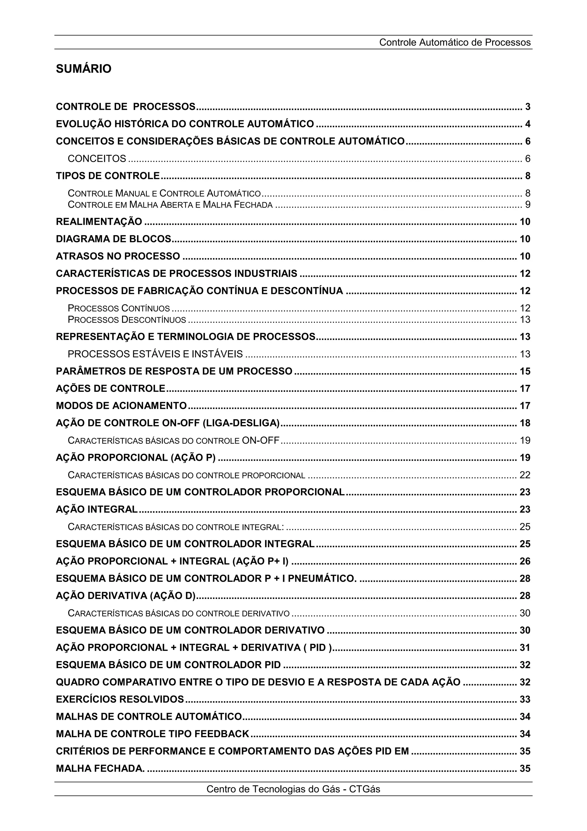 O documento discute os conceitos básicos de controle automático de processos, incluindo a evolução histórica, tipos de controle, ações de controle, características de processos industriais e malhas de controle. Aborda conceitos como controle manual vs automático, malha aberta vs fechada, ações proporcional, integral e derivativa e como esses elementos se combinam em controladores PID.