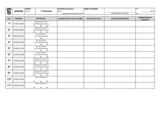 Aula HORÁRIO ALUNOS EM FALTA (Nº E NOME) MOTIVO DA FALTA ASSUNTO MINISTRADO