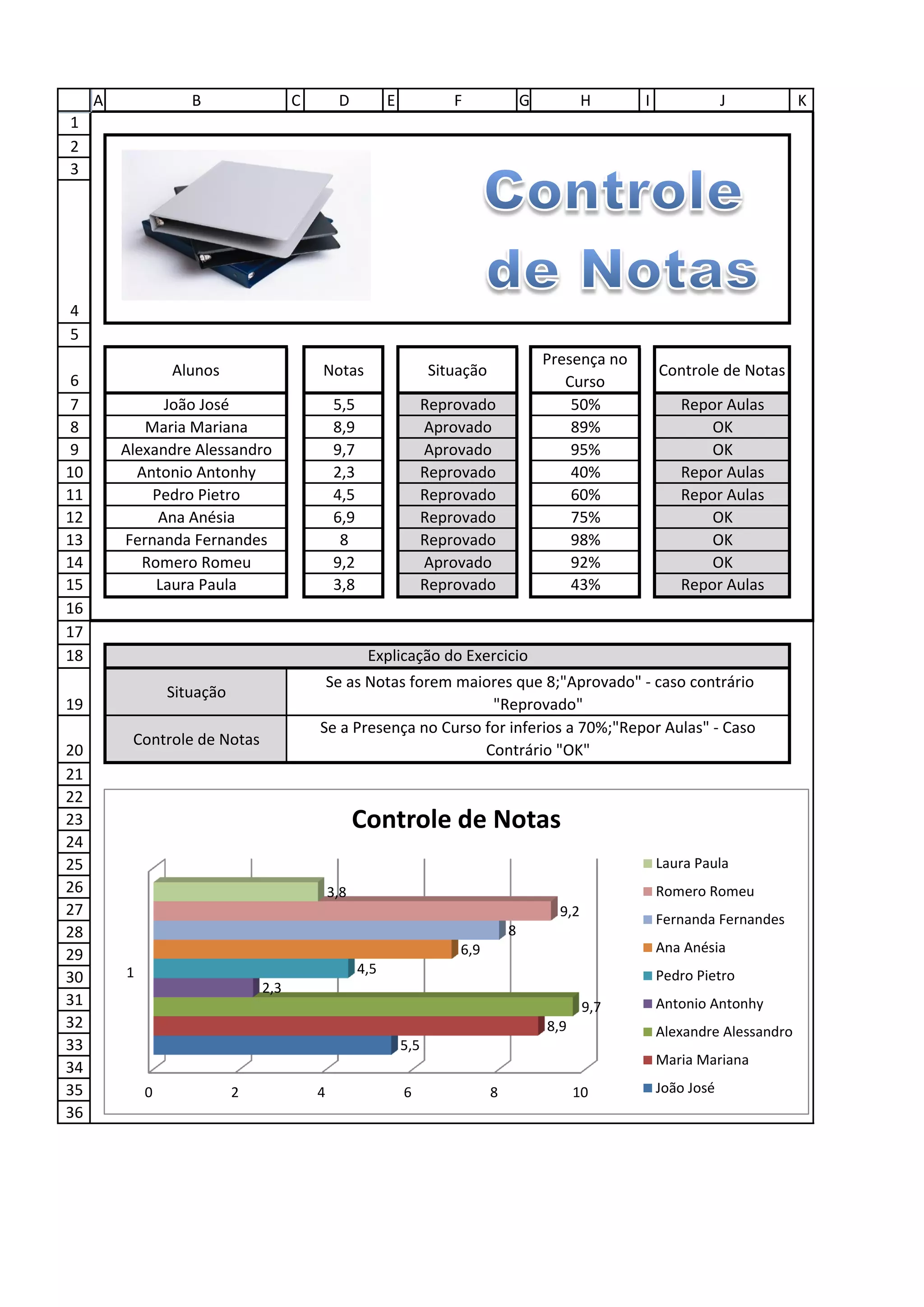 Alunos Notas Situação Controle de Notas